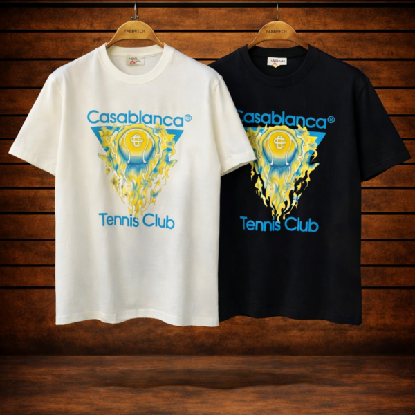Un perfetto equilibrio tra lusso contemporaneo e spirito sportivo distingue la T-shirt Casablanca Tennis Club, uno dei capi più iconici del brand. Caratterizzata dall’inconfondibile grafica ispirata al mondo del tennis e ai colori vibranti tipici di Casablanca, questa maglia rappresenta uno stile raffinato ma rilassato, ideale per un look premium quotidiano.