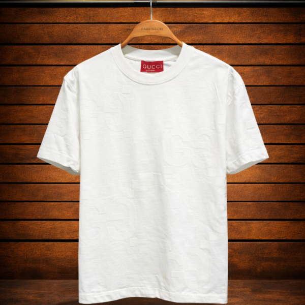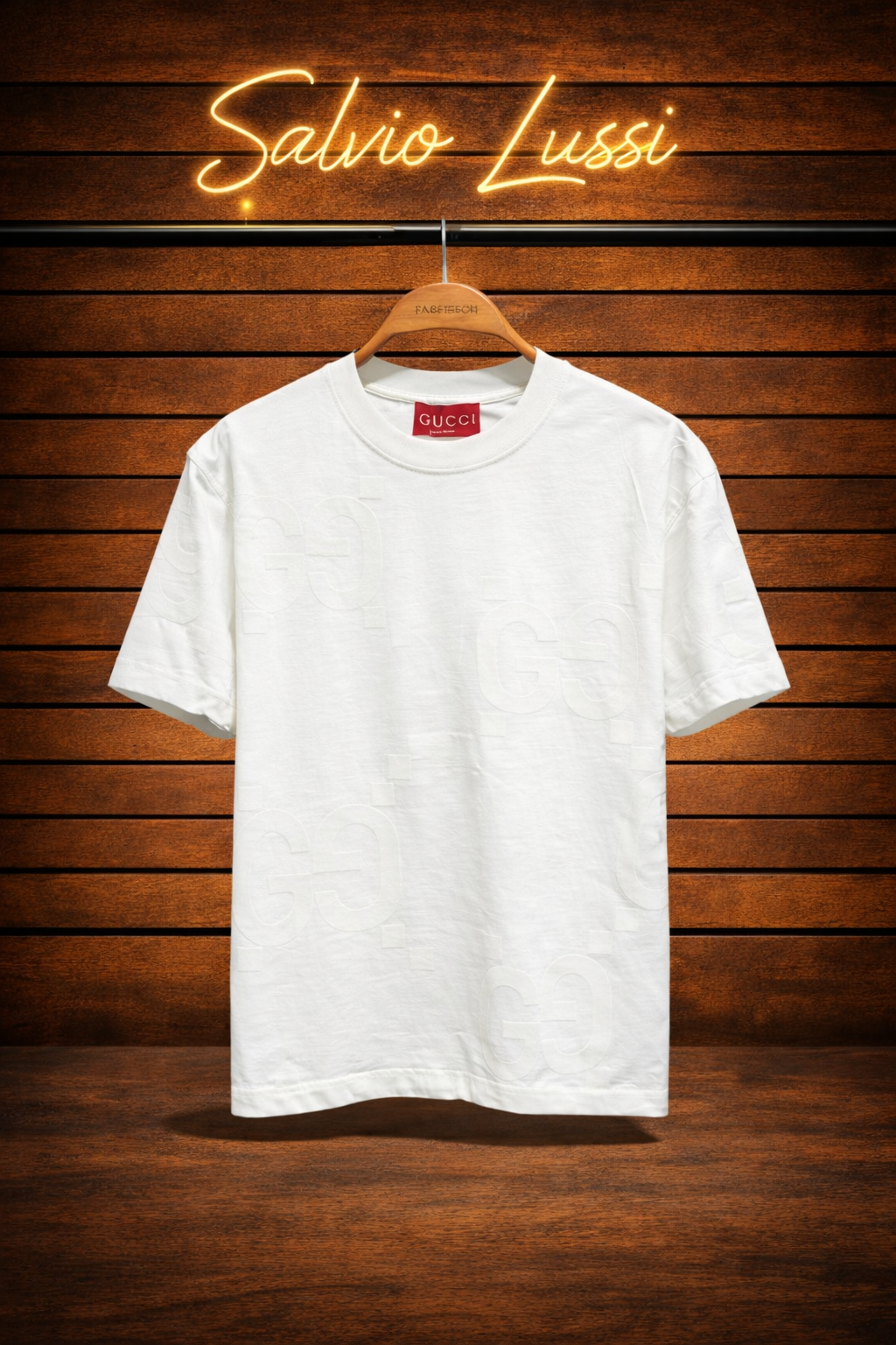 Eleganza contemporanea e stile iconico si incontrano in questa T-shirt Gucci, caratterizzata dall’inconfondibile motivo monogram tono su tono che dona profondità e raffinatezza al capo.