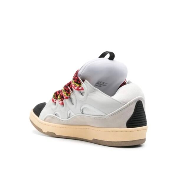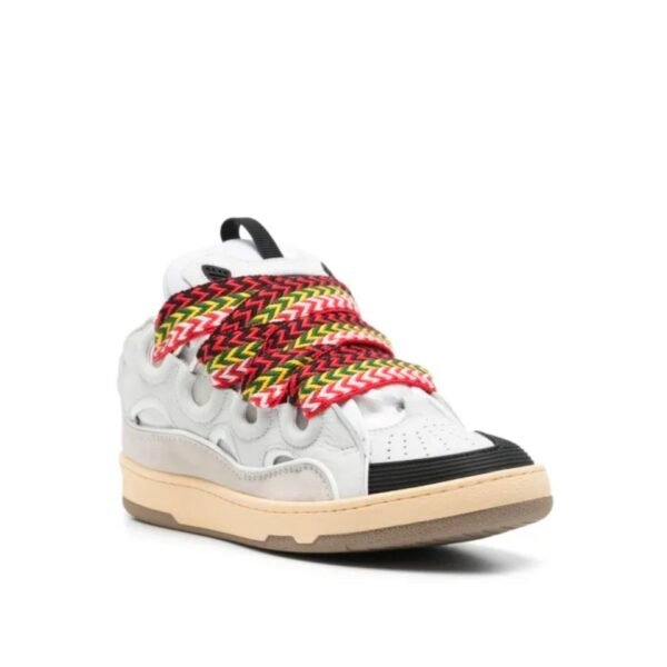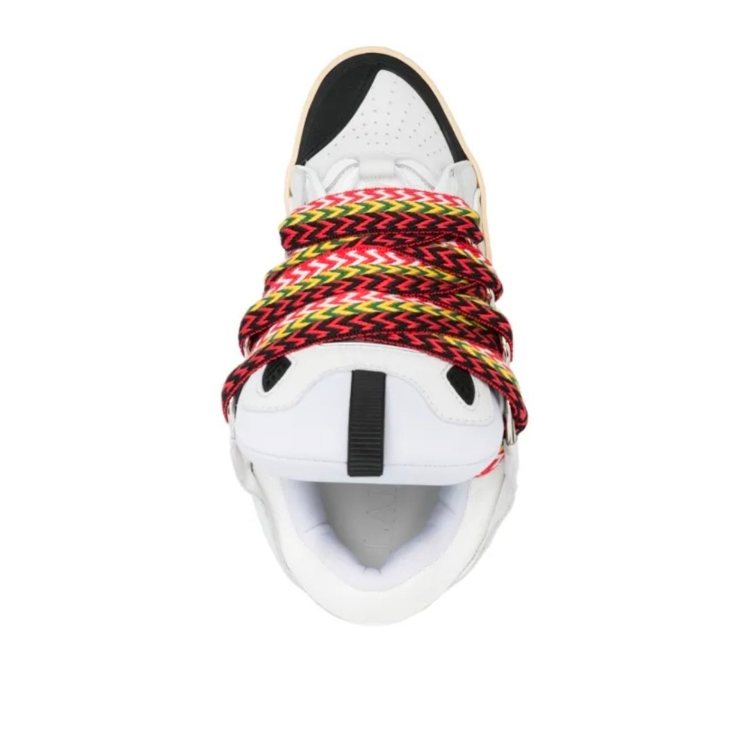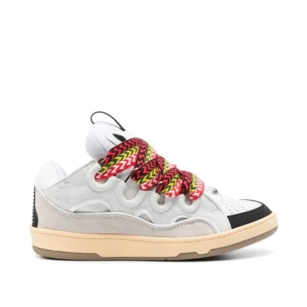 La tomaia in pelle e mesh combina leggerezza e resistenza, mentre gli iconici lacci oversize multicolor diventano il vero elemento protagonista, donando forte identità al modello. La suola strutturata garantisce comfort e stabilità, rendendo le Curb perfette per un utilizzo quotidiano con un impatto stilistico deciso.