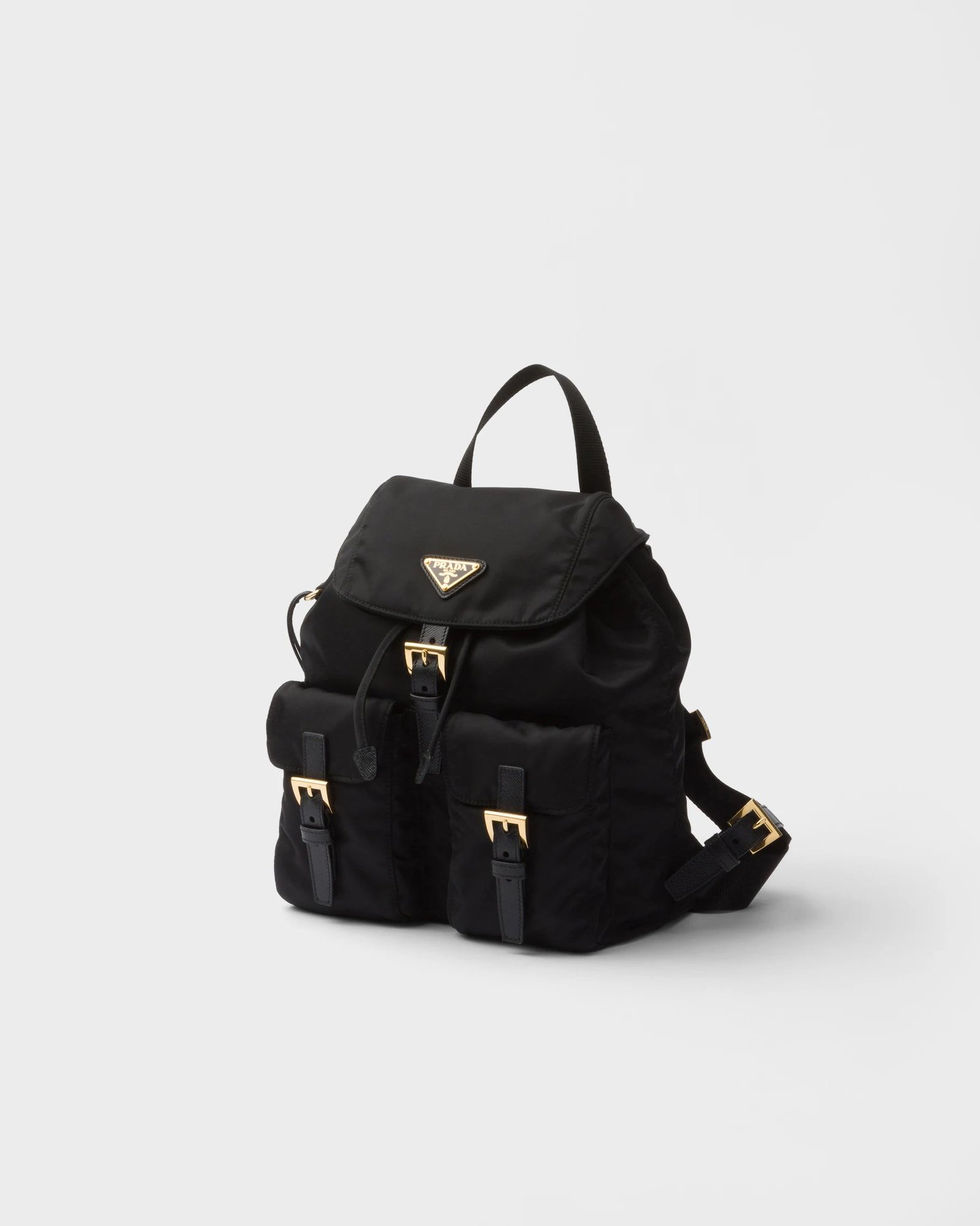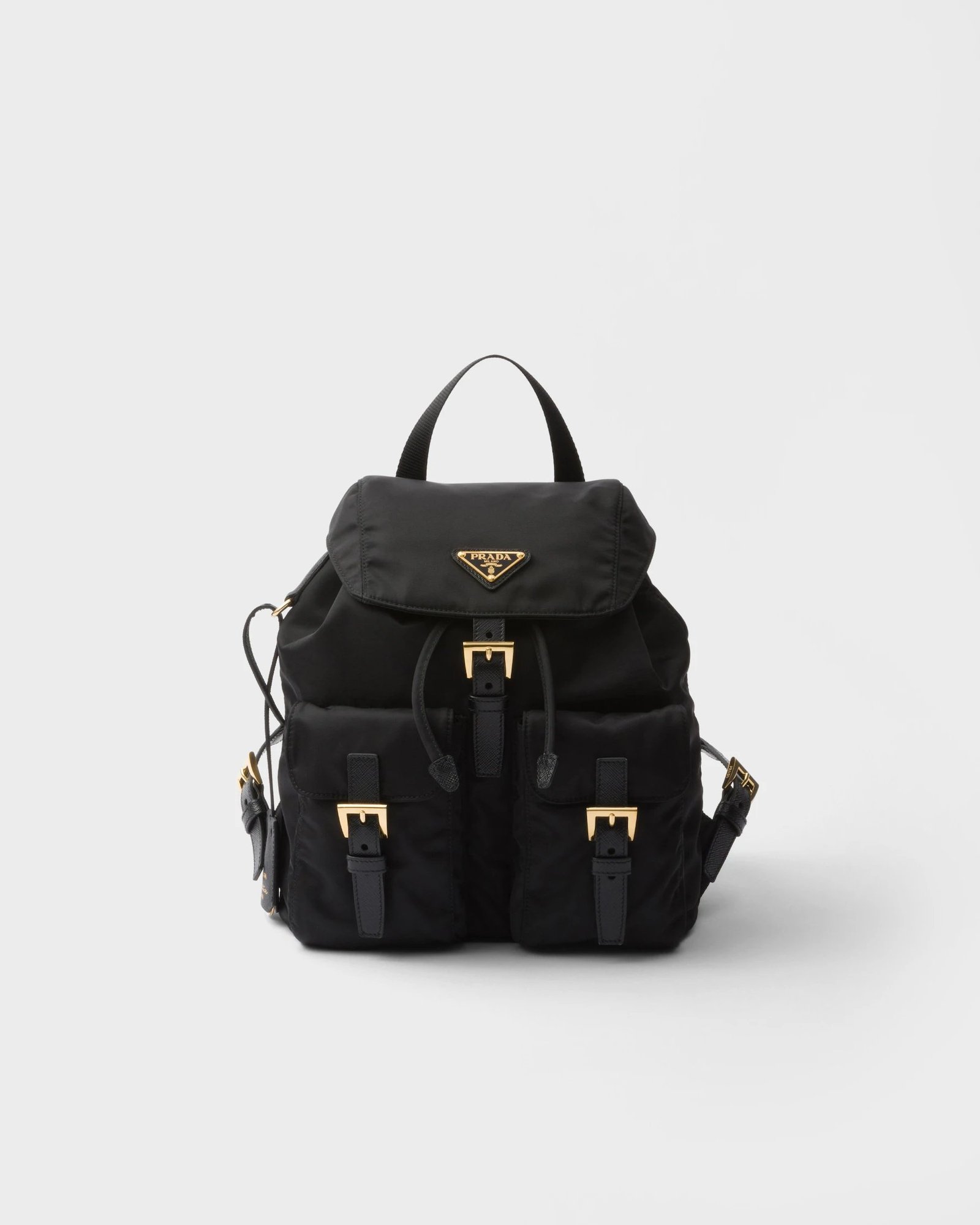 Zaino Prada Small realizzato in Re-Nylon, materiale tecnico leggero e resistente, simbolo dello stile sostenibile del brand. Compatto e funzionale, con chiusura con zip, tasca frontale esterna e spallacci regolabili per il massimo comfort. Ideale per l’uso quotidiano, unisce design iconico, praticità e lusso contemporaneo.